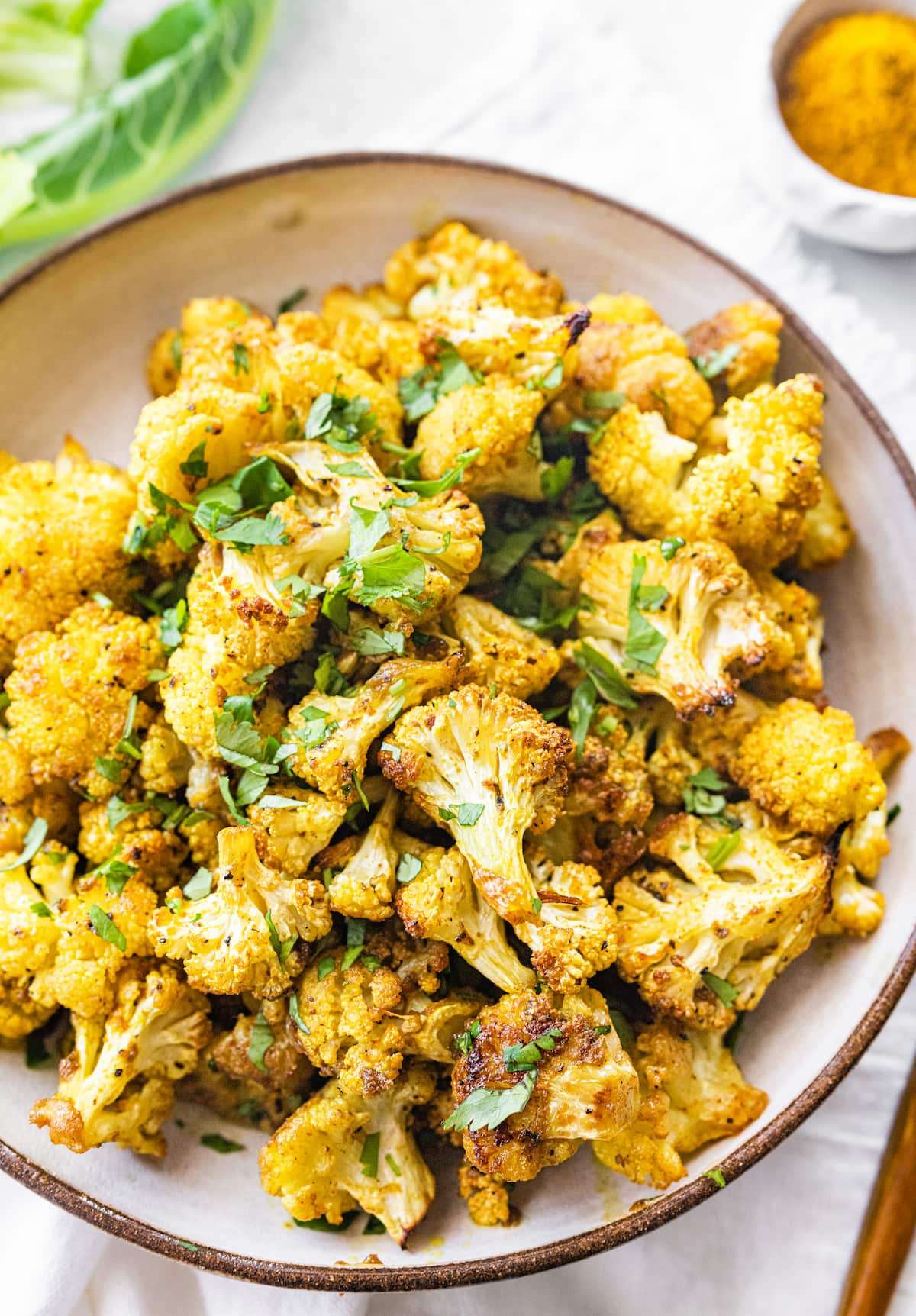 This simple curry roasted cauliflower comes together in just 30 minutes and is the perfect flavorful side dish for just about any main entree!