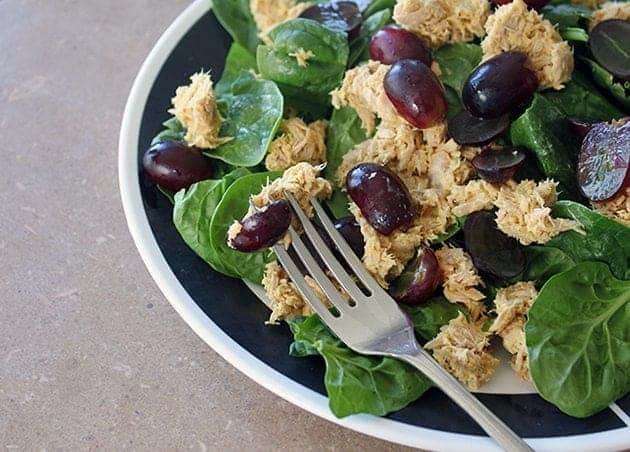 - Place the spinach on a plate, then dab the tuna mixture over the leaves.