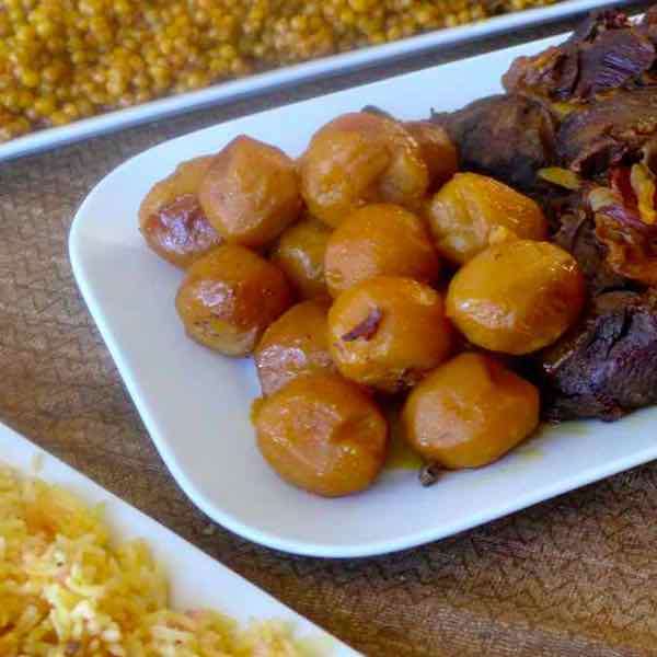 Dafina is the quintessential Moroccan Jewish dish served on Shabbat (Saturday) for lunch. This beef stew includes rice, chickpeas, potatoes and eggs.