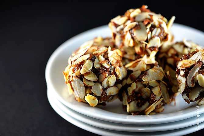 - Mix together dates, water and honey until it forms smooth, sticky dough. Stir in cinnamon and half of almond slices. Scoop by the tablespoon and form into balls. Roll in remaining almond slices and place on parchment paper to dry. Alternately, you can place in an airtight container in the refrigerator or freezer to dry more quickly.