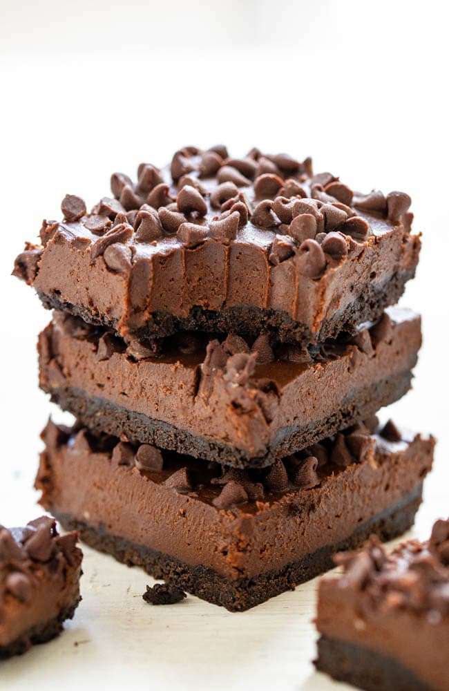 Only for serious chocoholics because they’re rich, creamy, decadent, and loaded with chocolate!! NO-BAKE and an easy MAKE-AHEAD dessert!!