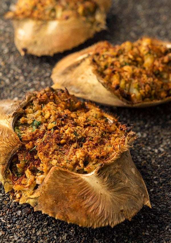 These make fantastic appetizers before a larger seafood feast, or, if you use big Dungeness crab shells as I do here, a light supper all by itself. You can refrigerate the mixture for a few days beforehand, and you can freeze the stuffed crabs, well wrapped, for a few months.