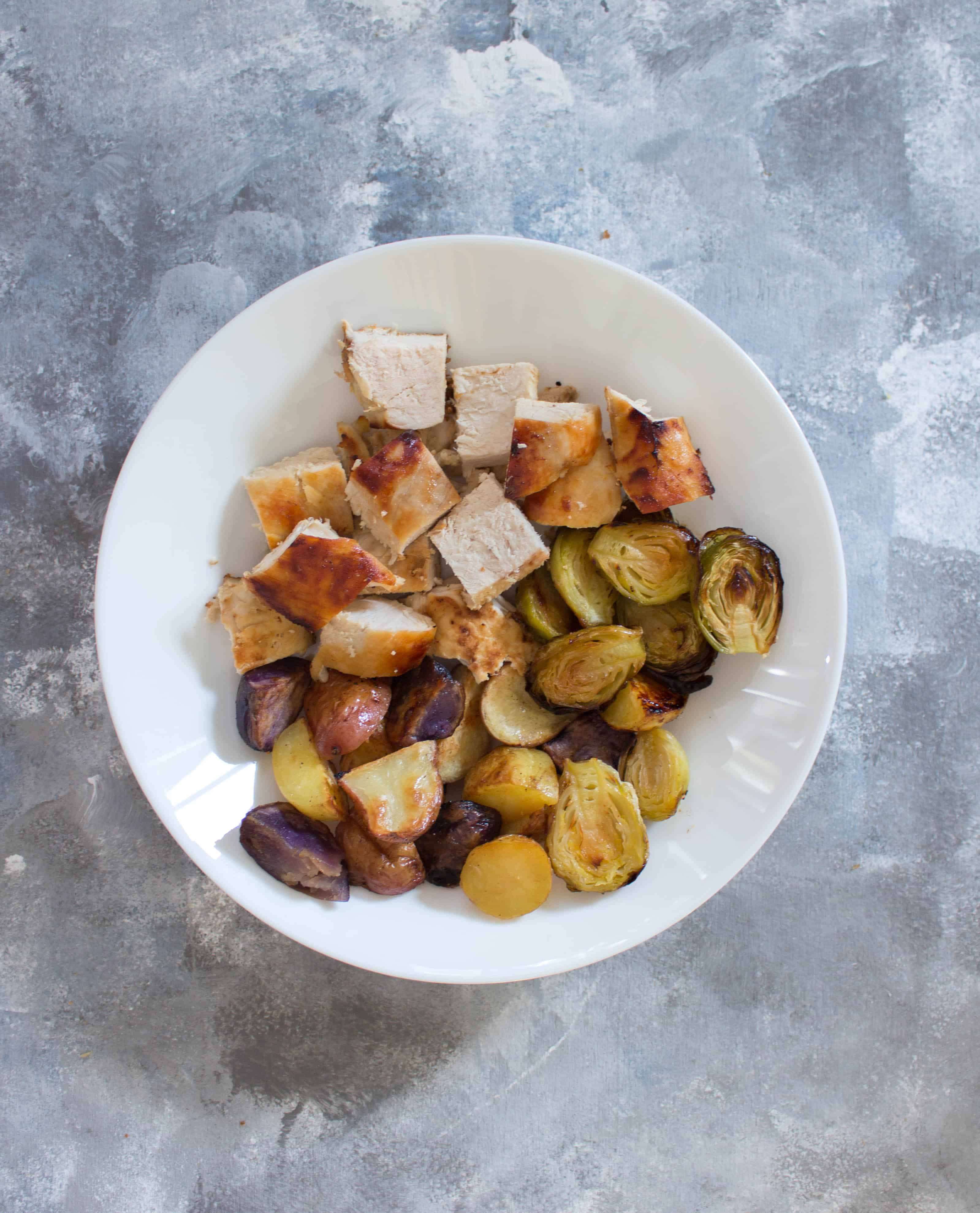 Dinner For Two: Sheet Pan Honey Lemon Chicken with Roasted Potatoes and Brussel Sprouts