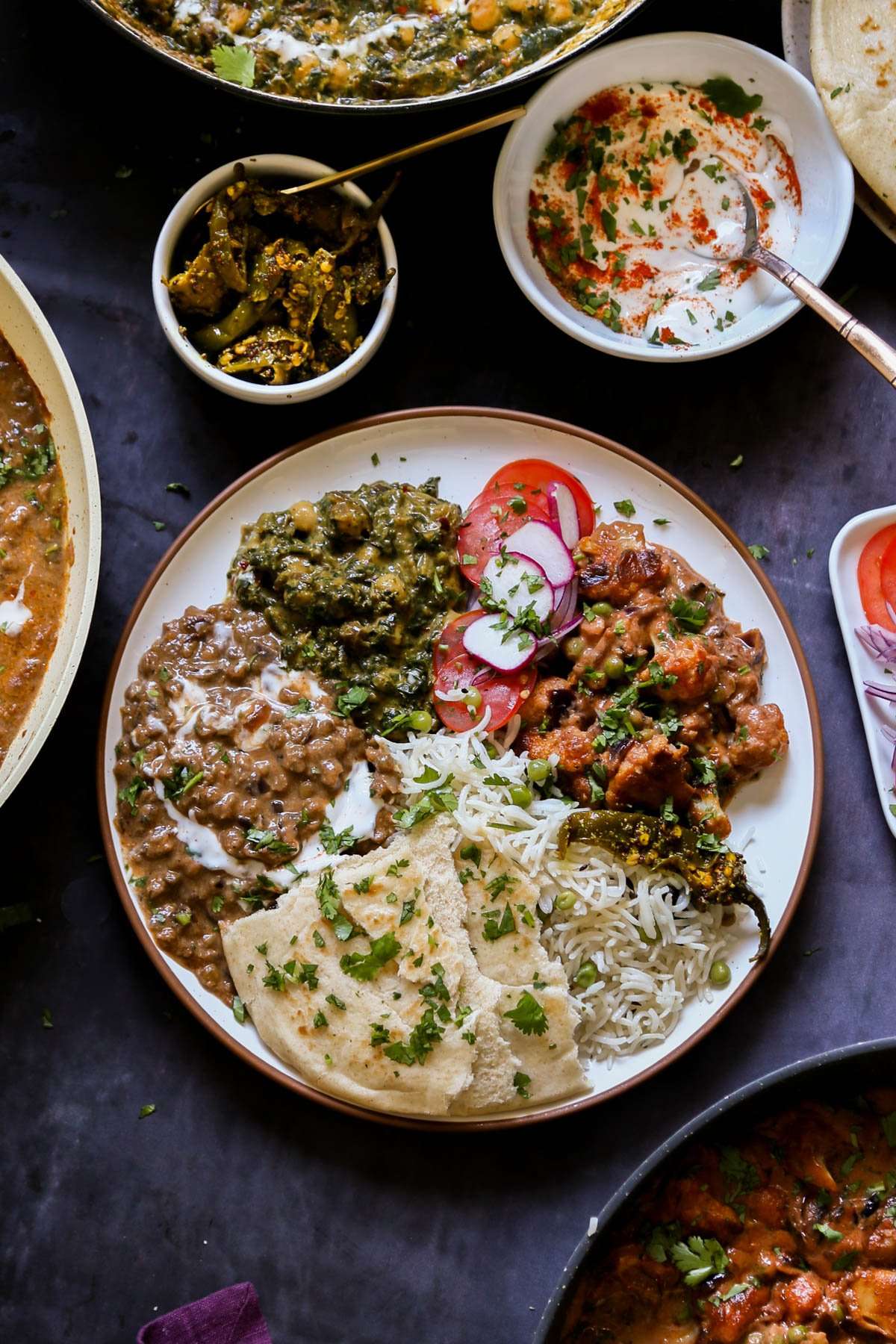 - Pair these dishes with some flatbread, naan, or pita bread. Just warm those up when you're ready to serve, and brush some vegan butter on them and sprinkle some chopped cilantro on the bread and over each of these dishes for a beautiful presentation. Drizzle some non-dairy cream, cashew cream, or thinned out non-dairy yogurt over the lentils and the chana saag. Serve it with mango chutney or tomato chutney, raita dip or an Indian pickle. I usually serve an Indian green or red chili pickle on the side.