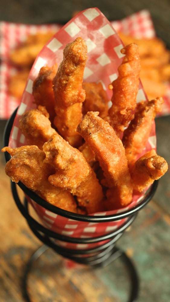 Homemade french fries dipped in cajun spiced beer batter twice so that they're extra crispy.