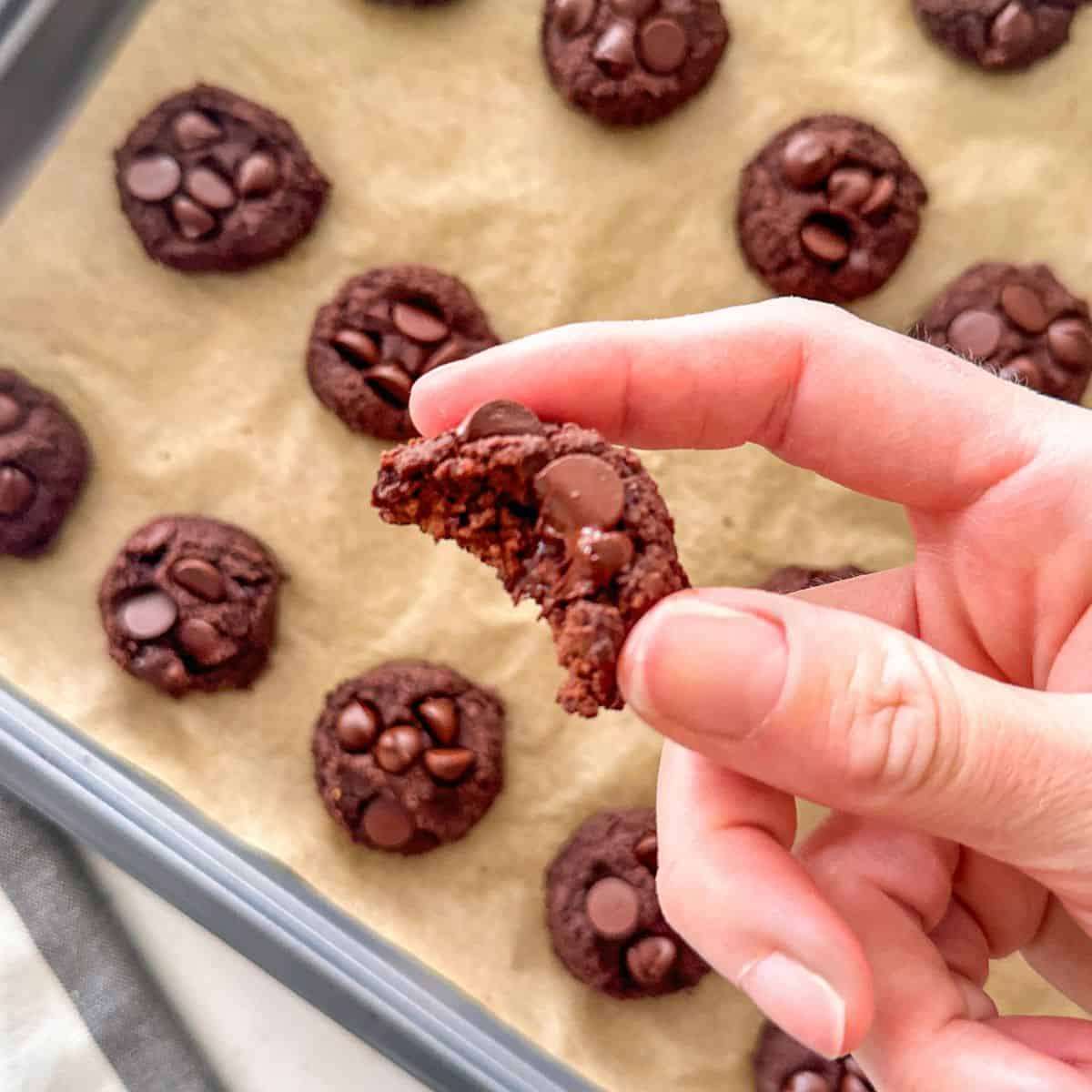 These chocolate chickpea cookies are a deliciously healthy dessert with a rich, gooey chocolate flavour.