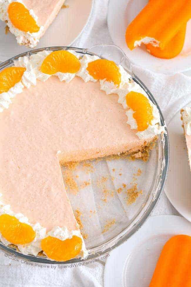 - This pie can be served frozen. If freezing pie, let the orange layer firm up in the fridge for about 15 minutes and then top with cool whip. Slice pie before freezing (this makes for easy serving) and freeze overnight. Add mandarin oranges just prior to serving.
