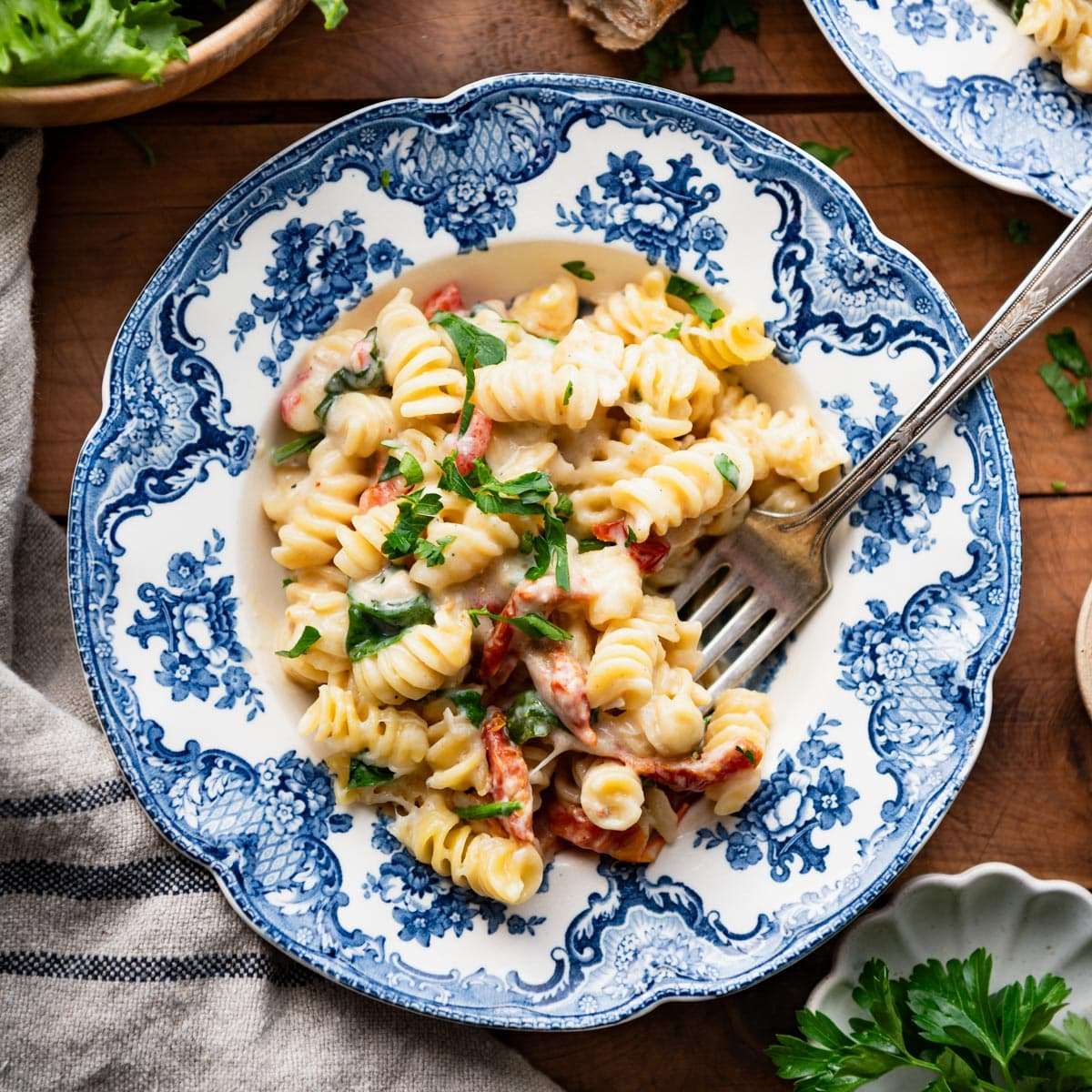 Cooking for a Smaller Family: Cut all of the ingredients in half and bake the casserole in an 8-inch square pan. Check the pasta after 25-30 minutes, as it may be done slightly sooner than the larger pan. Don’t have rotini? You can substitute with other similar short pasta shapes such as penne pasta, ziti, elbows, or medium shells. Just pick a pasta that has a similar cooking time as rotini (about 7-8 minutes recommended on the package) — otherwise you’ll need to adjust the casserole’s baking time in the oven.