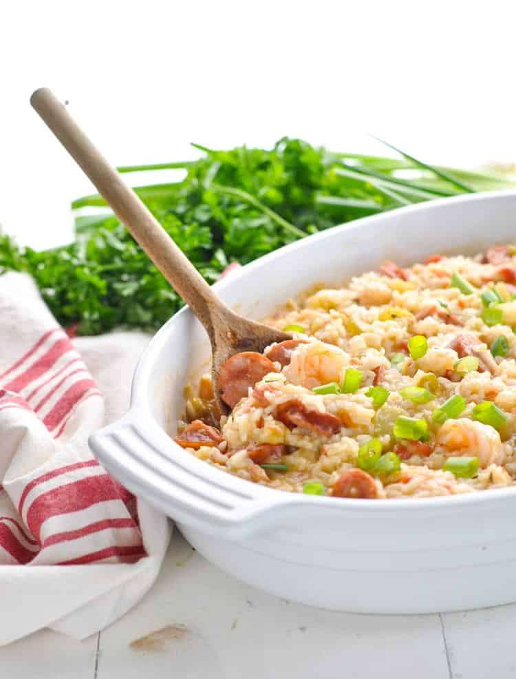 - Cooking for a Smaller Family? You can cut all of the ingredients in half and bake the Jambalaya in an 8-inch square pan.