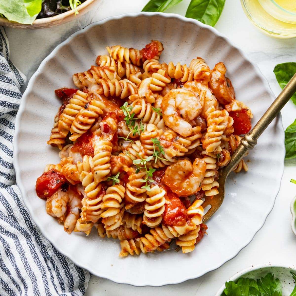 An easy baked shrimp marinara pasta casserole with just 10 minutes of prep!