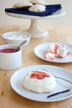 Easter Pavlovas with Lemon Whipped Cream and Vanilla-Rhubarb Compote