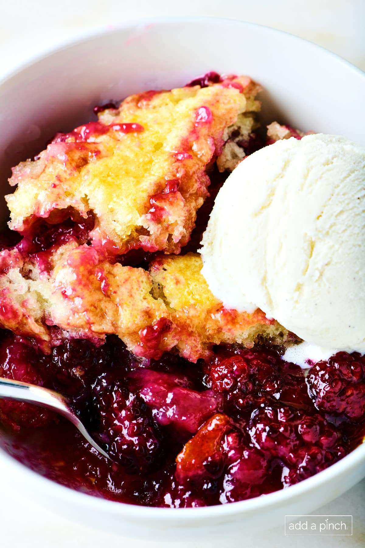 This easy Blackberry Cobbler recipe requires 5 minutes of prep time for a delicious cobbler recipe! Use fresh or frozen blackberries in this classic dessert any time.