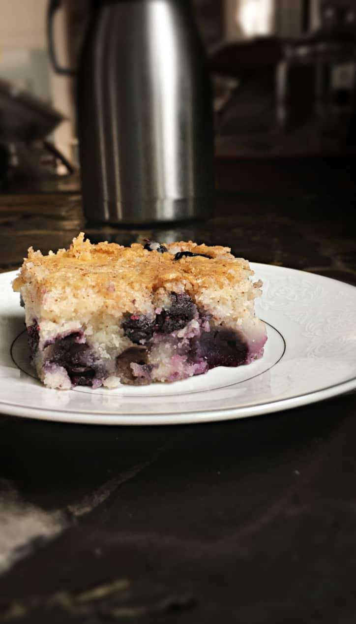 - Either gently fold the blueberries into the mix or you can simply sprinkle the blueberries over the top, either way works! (The blueberries gently sink down into the cake mix as it bakes)