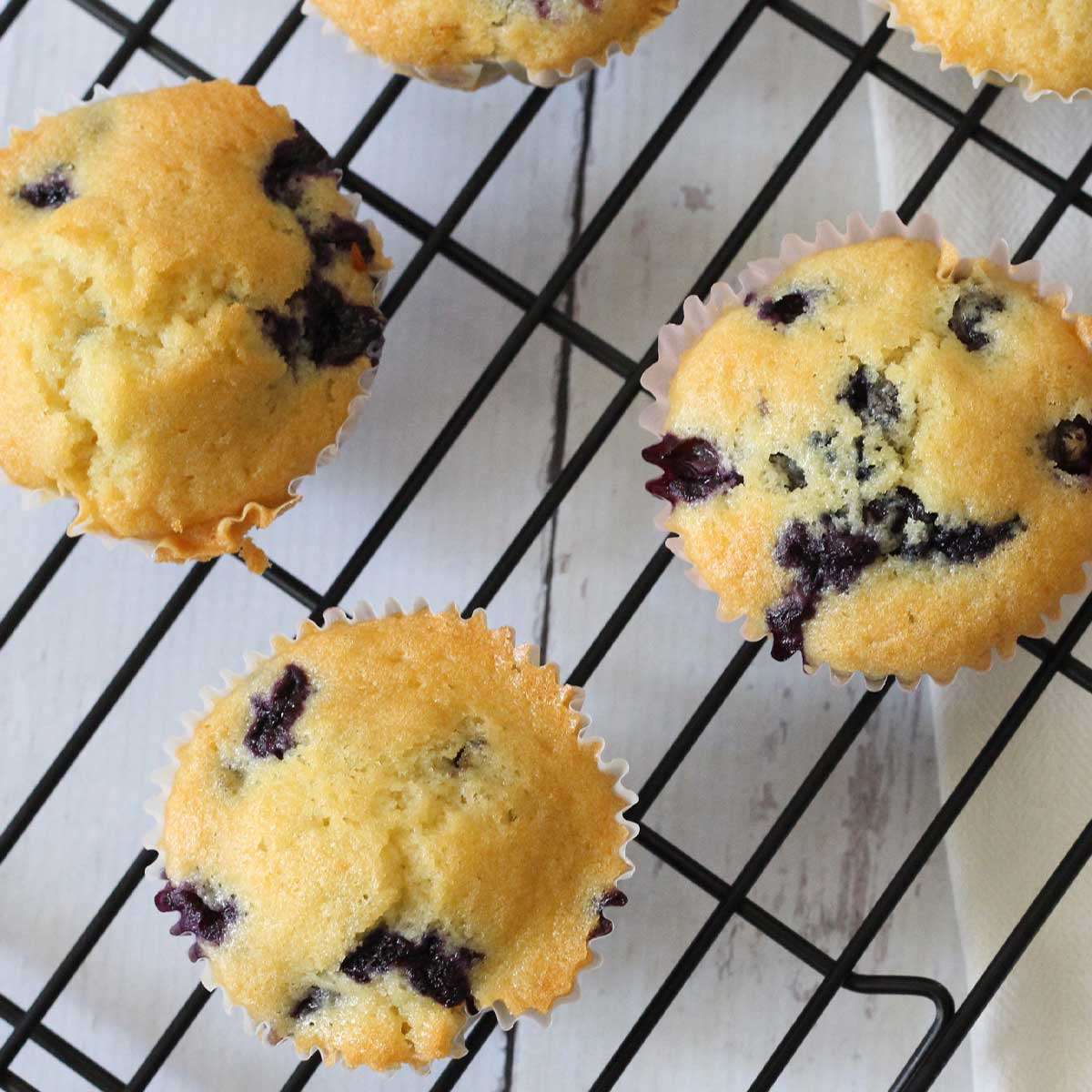 Delicious recipe for homemade blueberry muffins. These have LOT of Blueberry flavor and less butter than usual. YUM!