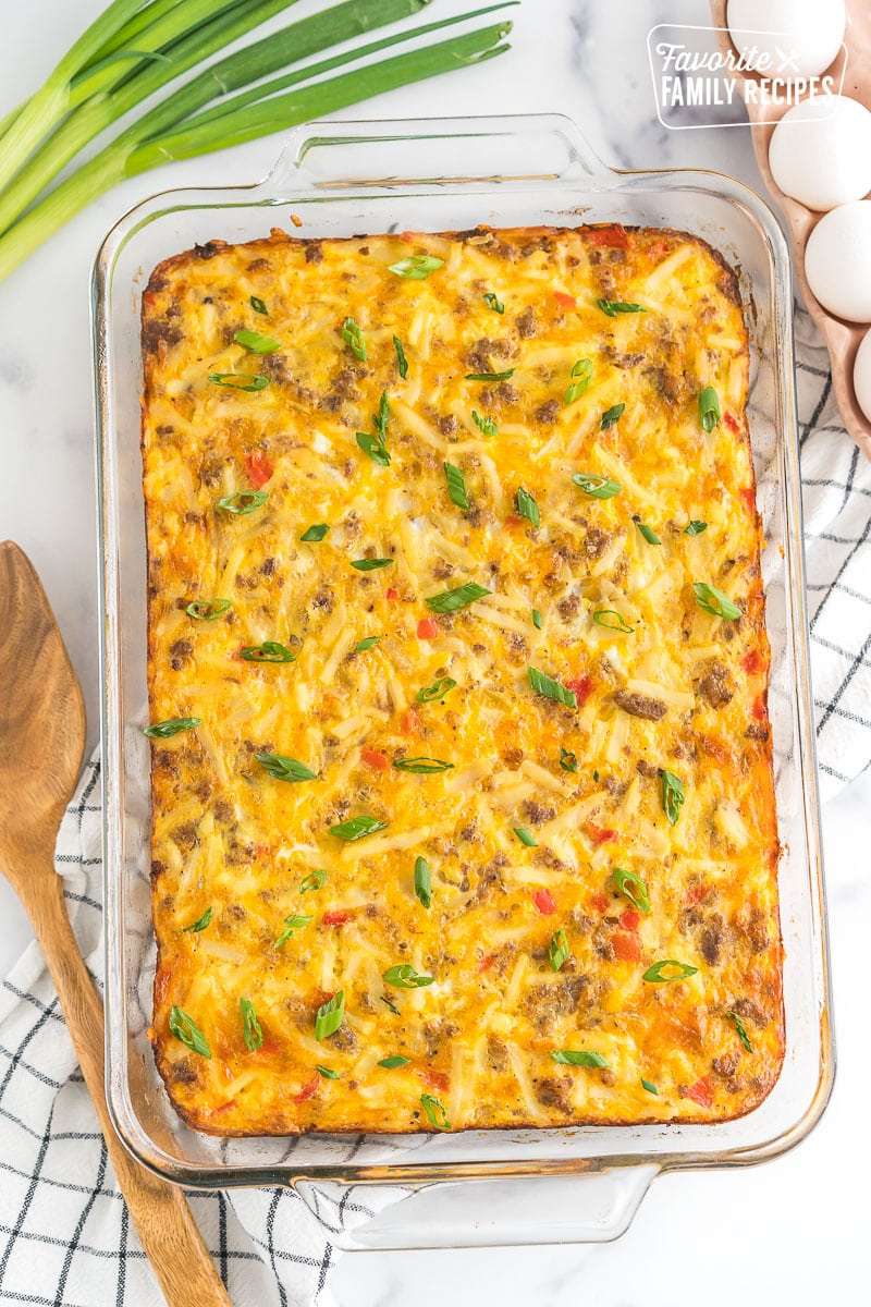 Easy breakfast casserole is the perfect morning meal, especially when feeding a crowd. You'll love this dish full of eggs, hash browns, meat and cheese!
