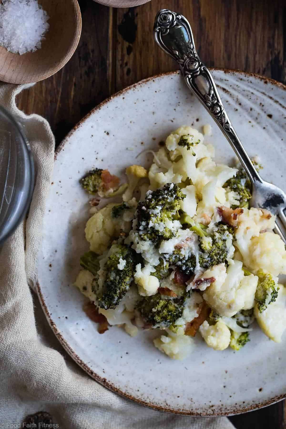 Loaded Broccoli Cauliflower Cheese Casserole is the kind of goodness you might just make your whole meal. Bacon, cheese… loads of flavor – it’s perfect!