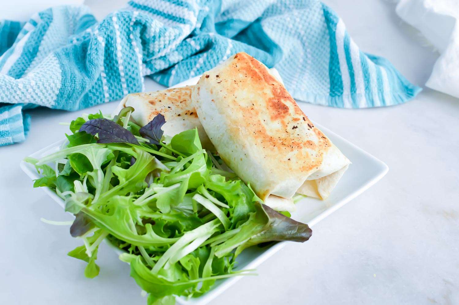 - Turn these chicken burritos into “wet burritos” by making them enchilada style by pouring a can of red or green enchilada sauce over a pan of your burritos, top with extra shredded cheddar cheese, and bake at 350 degrees for 10 minutes until the cheese melts.