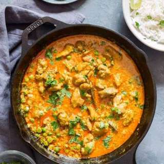 - Chicken breast - sprinkle with 2 tsp extra curry powder plus pinch of salt and pepper. Sear first in a bit of oil then remove (no need to cook through). Follow recipe - fry off curry with just the onion. Add breast back in towards end of sauce simmering, just to finish cooking.