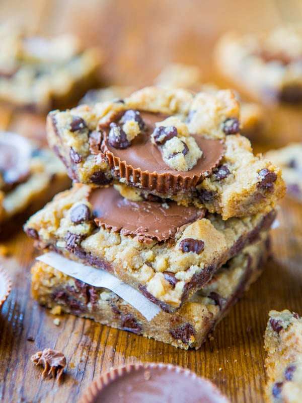 Easy Chocolate Chip Cookie Bars (with PB Cups!)