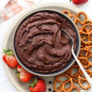A chocolate hummus recipe with creamy milk and dark chocolate.