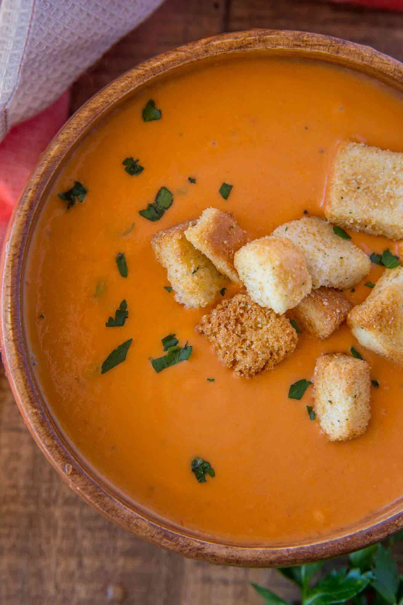 Easy Creamy Tomato Soup made with just a handful of ingredients and so smooth you'll never eat the canned stuff again. Plus it is ridiculously easy to make!