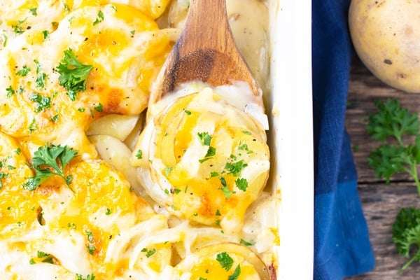 - If you would like to make this recipe with ham simply cut ½-pound of ham into ½-inch cubes and sprinkle over the first and second potato layers.