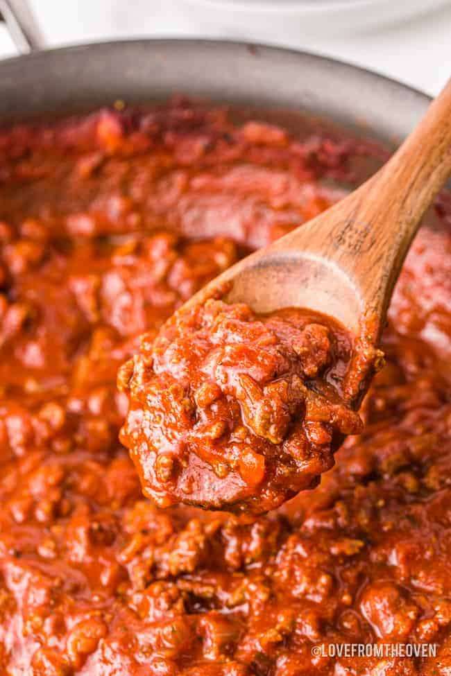 - Bring mixture to a boil. Turn down heat and gently simmer, uncovered, for 20 minutes.Serve over hot, cooked, and salted spaghetti or pasta of choice. Garnish with chopped parsley or basil (optional) before serving.