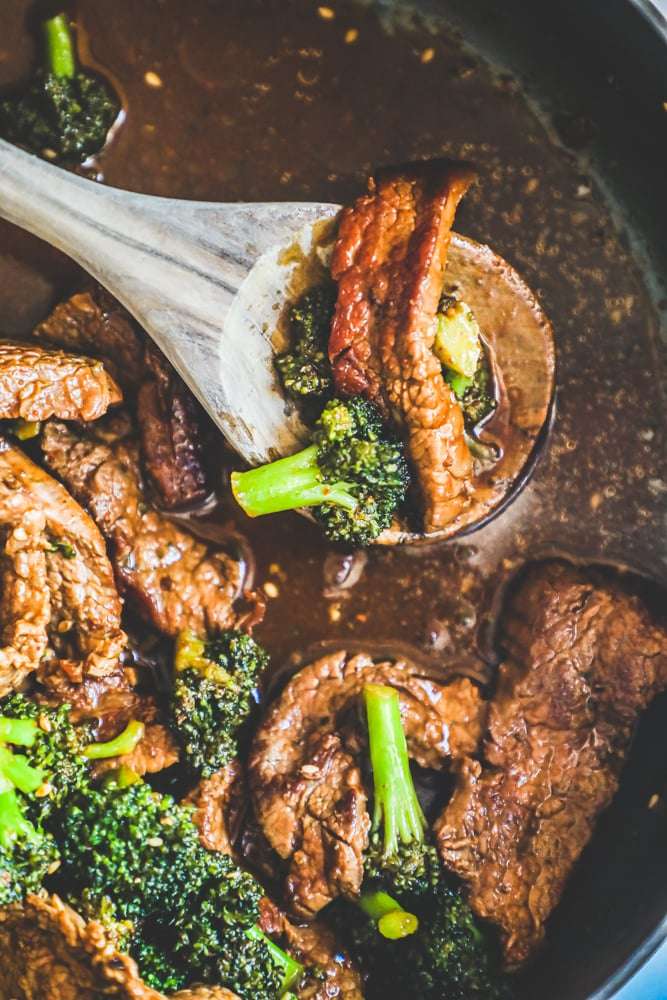 Crispy tender beef strips and broccoli in a rich delicious sauce that is the perfect winner winner keto dinner!