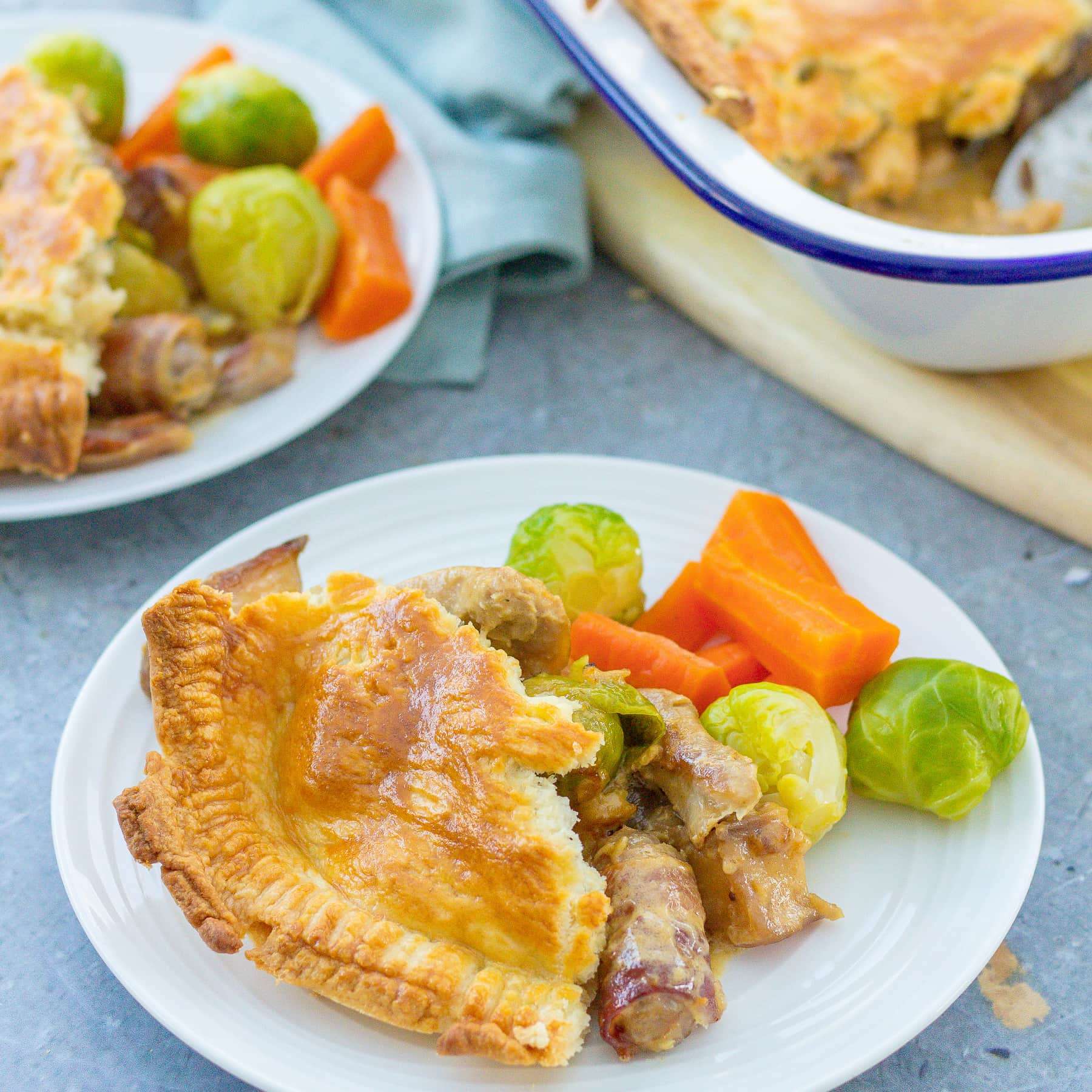 - Put your pie in the preheated oven and cook for 20 minutes or until golden and bubbling. Serve on its own or with mash and / or green vegetables for a more substantial meal.