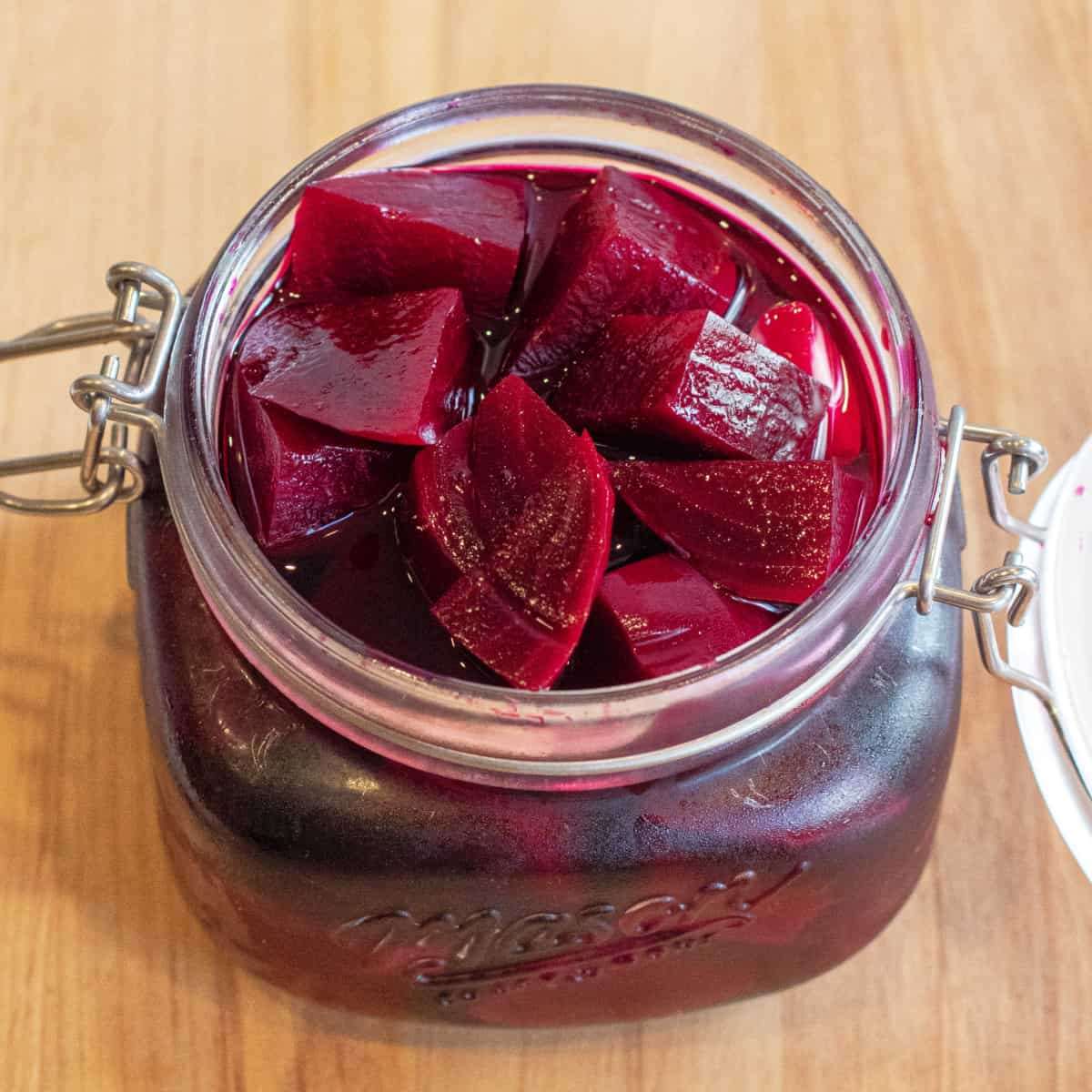 - Chill: Cover and let the beets chill in the fridge for 1 hr (although pickling will start after 15 minutes). Use as a snack, side, or salad or sandwich topper!