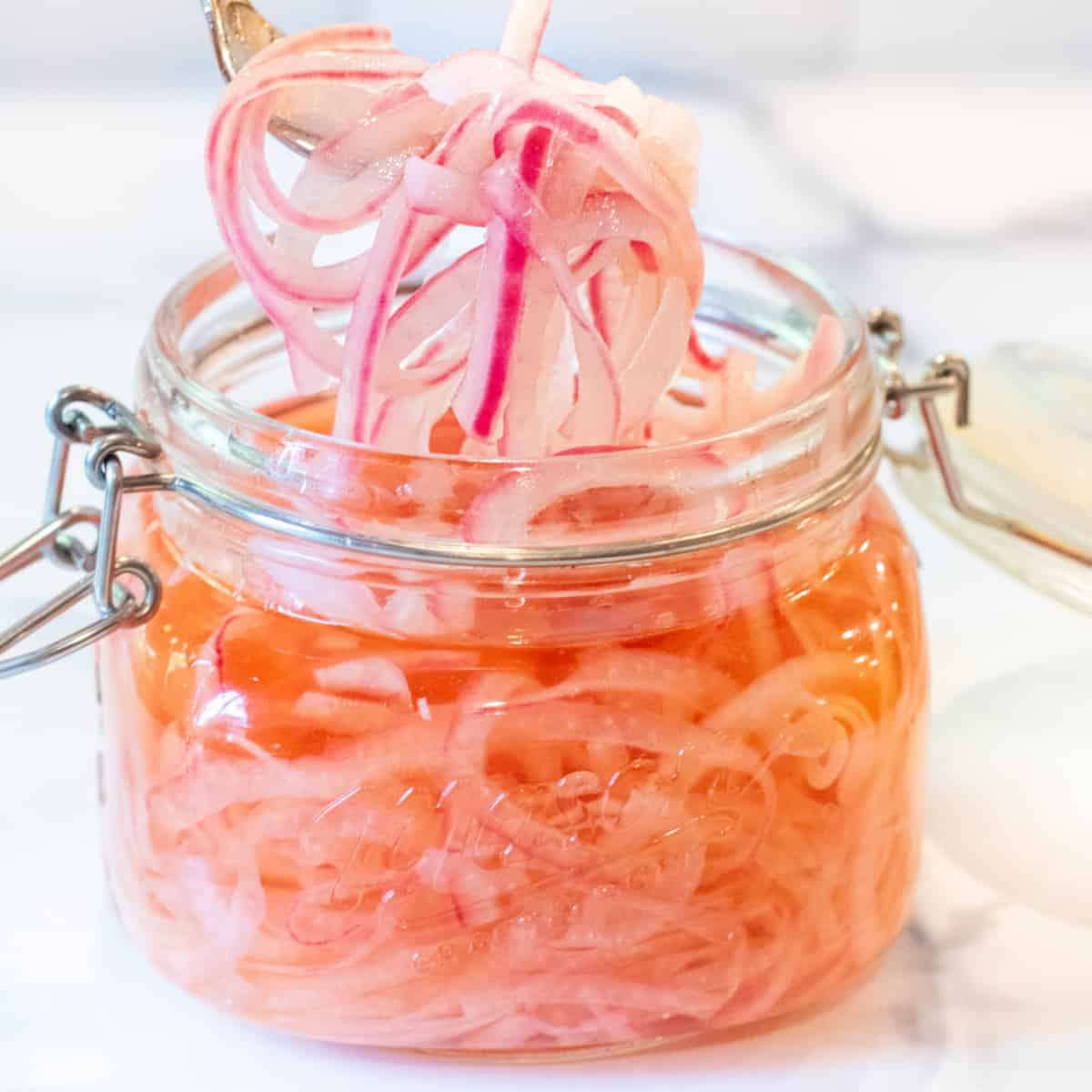 - Rest: Let the onions rest on the counter for about 10 minutes to ensure the liquid has cooled and then store in the fridge. After about 30-60 minutes, once your onions are bright pink and tender, they're ready to enjoy. Store them in the fridge for up to 2-3 weeks.