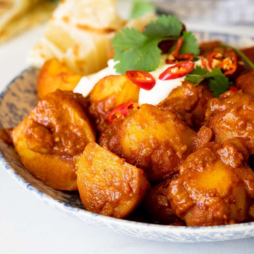 This rich, aromatic potato curry is an easy and delicious meatless recipe. Serve with roti and yogurt for a fantastic weeknight dinner.