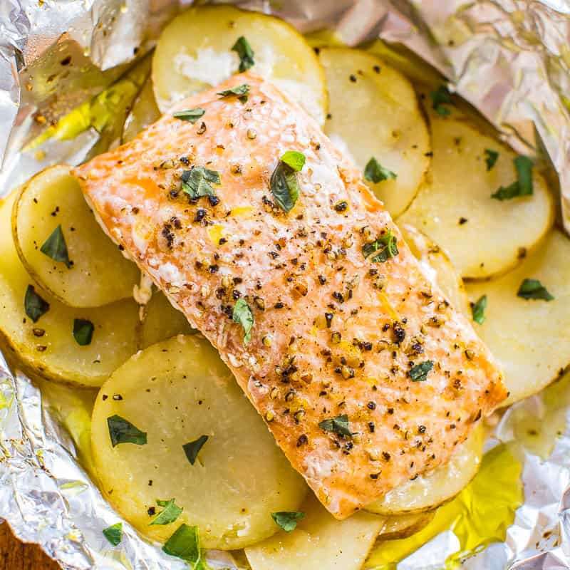 Juicy salmon foil packets that are loaded with flavor! Ready in 30 minutes, zero cleanup, and a foolproof way to cook salmon and look like a gourmet cook!!