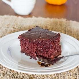 - While the cake is baking, bring butter, cocoa, and cream to a boil in a small saucepan, stirring occasionally. Remove from heat, and stir in vanilla and confectioners’ sugar. Use while still warm. Remove cake from pan and remove the parchment paper from the cake. Place the cake back in the pan and pour warm chocolate icing over the cake. Let cool completely.