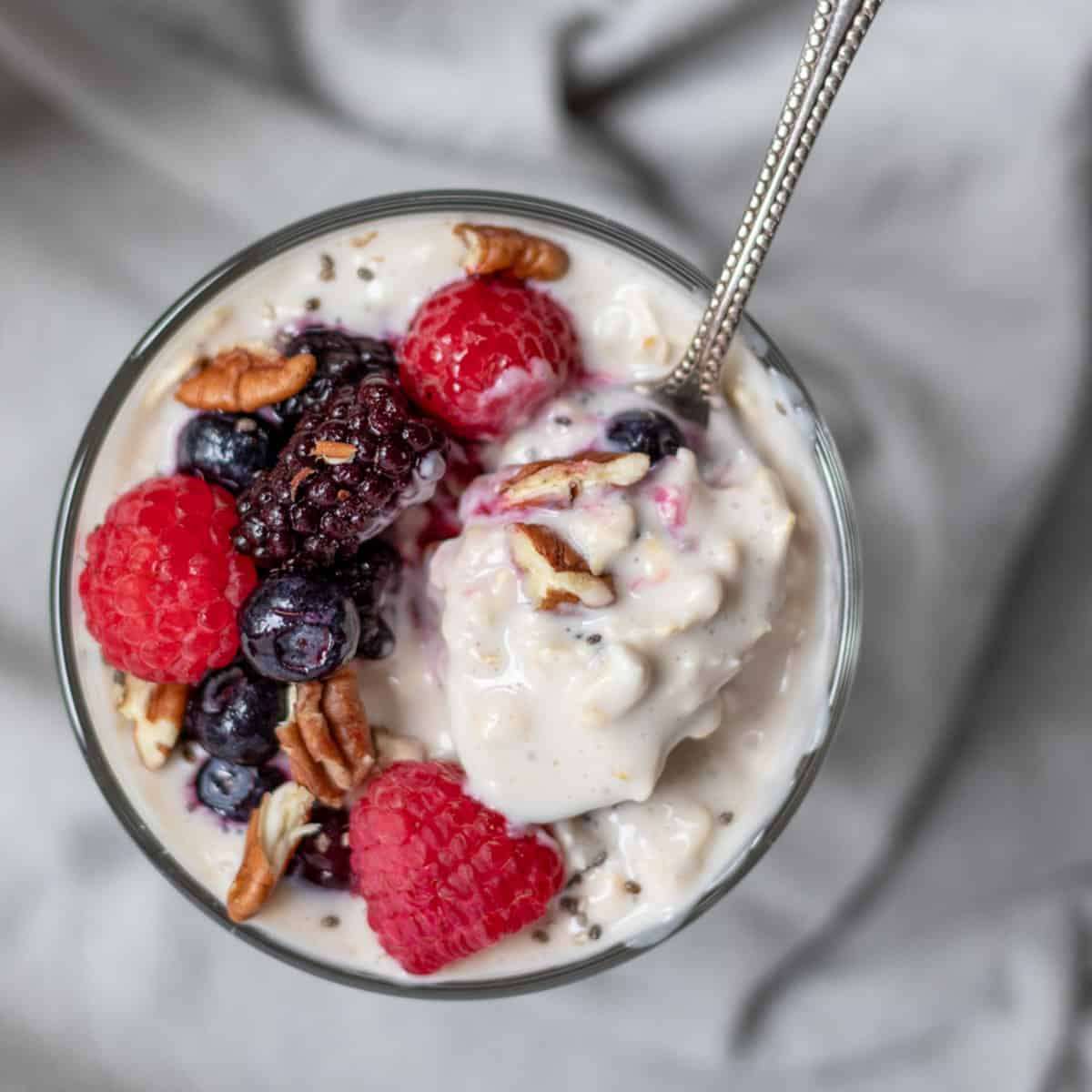 Combining oats and yogurt is the easiest version of overnight oats there is! Plus, yogurt softens oats more quickly, so you can even mix it up in the morning. The result is so creamy and delicious, no milk or chia seeds needed (though you can certainly add them if you like). Customize your yogurt oats with all of your favorite flavorings and toppings.