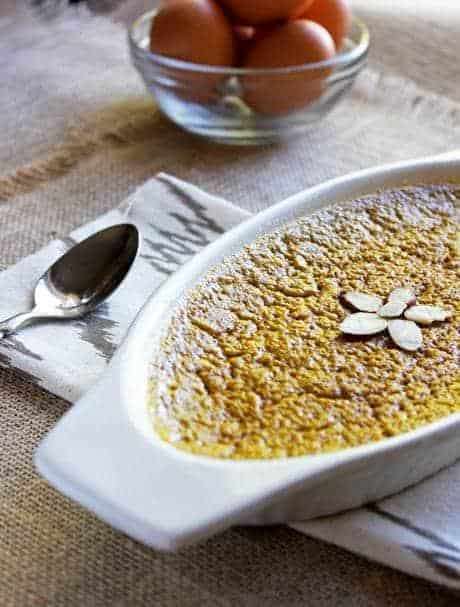 A creamy, spiced egg custard with honey and dark chocolate; a modern twist on a timeless dessert.