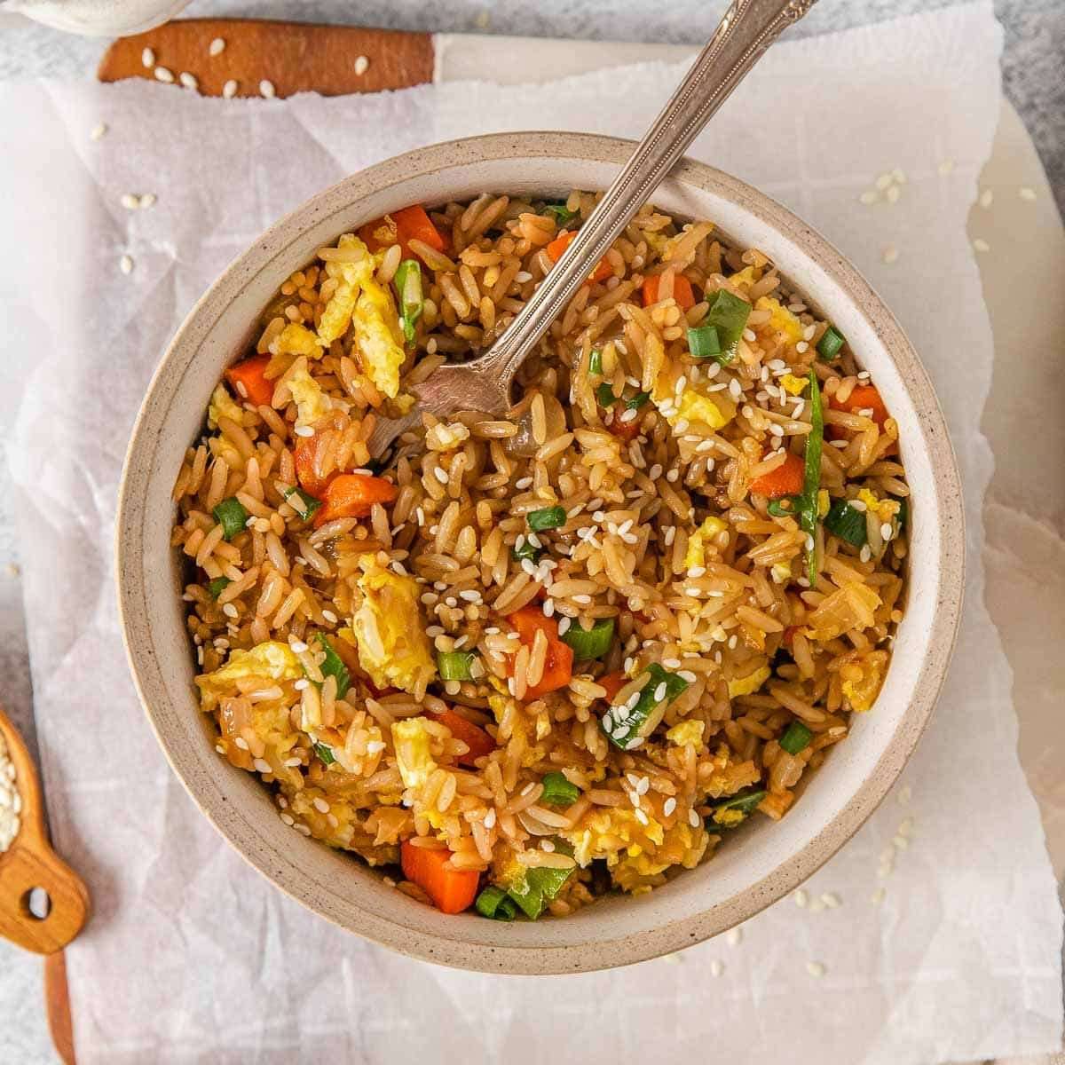 This easy egg fried rice is takeout comfort food made right in your kitchen! It's an easy recipe that comes together quickly using rice, eggs, and other simple ingredients. One bite and you'll have everyone asking what Chinese restaurant you ordered from!