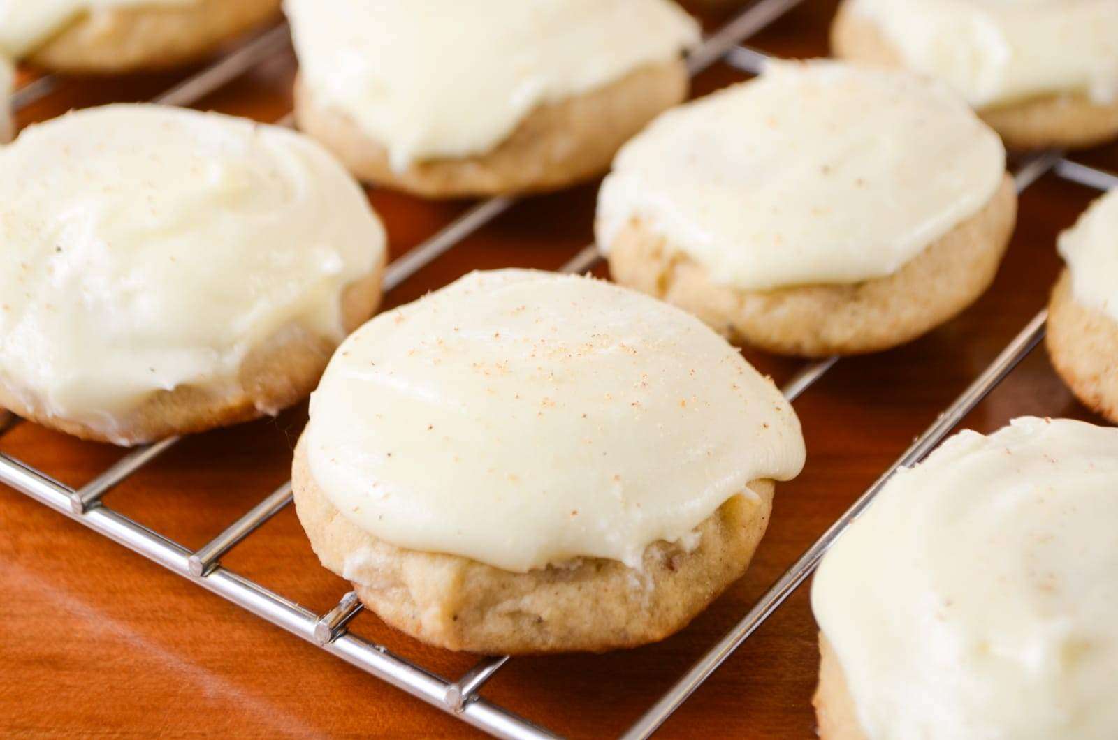 - Once the cookies have completely cooled, frost cookies with the eggnog frosting.