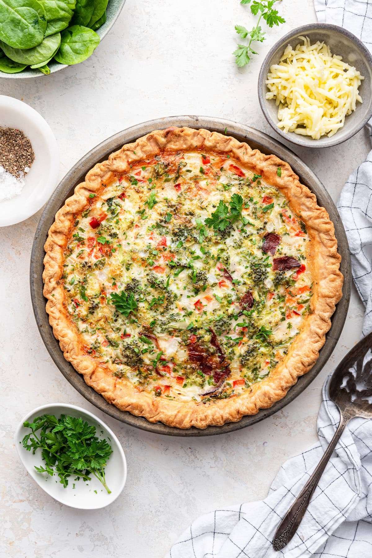 - Pie Crust – use a gluten-free pie crust to make this quiche gluten-free.