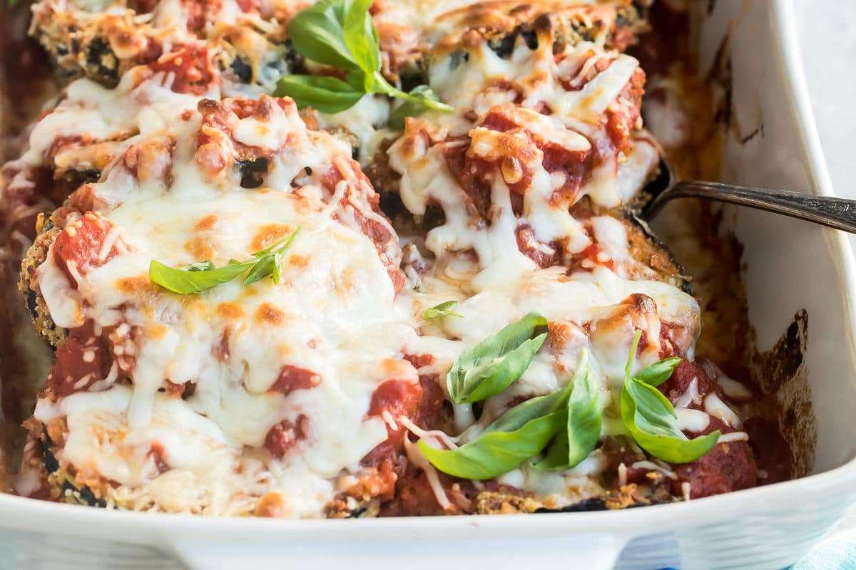 This recipe for Eggplant Parmesan uses the high heat of the oven for crispy breaded eggplant without the mess of a deep fryer. Add my 10-minute quick tomato sauce or your favorite jarred sauce and lots of mozzarella for a delicious homemade Italian dinner.