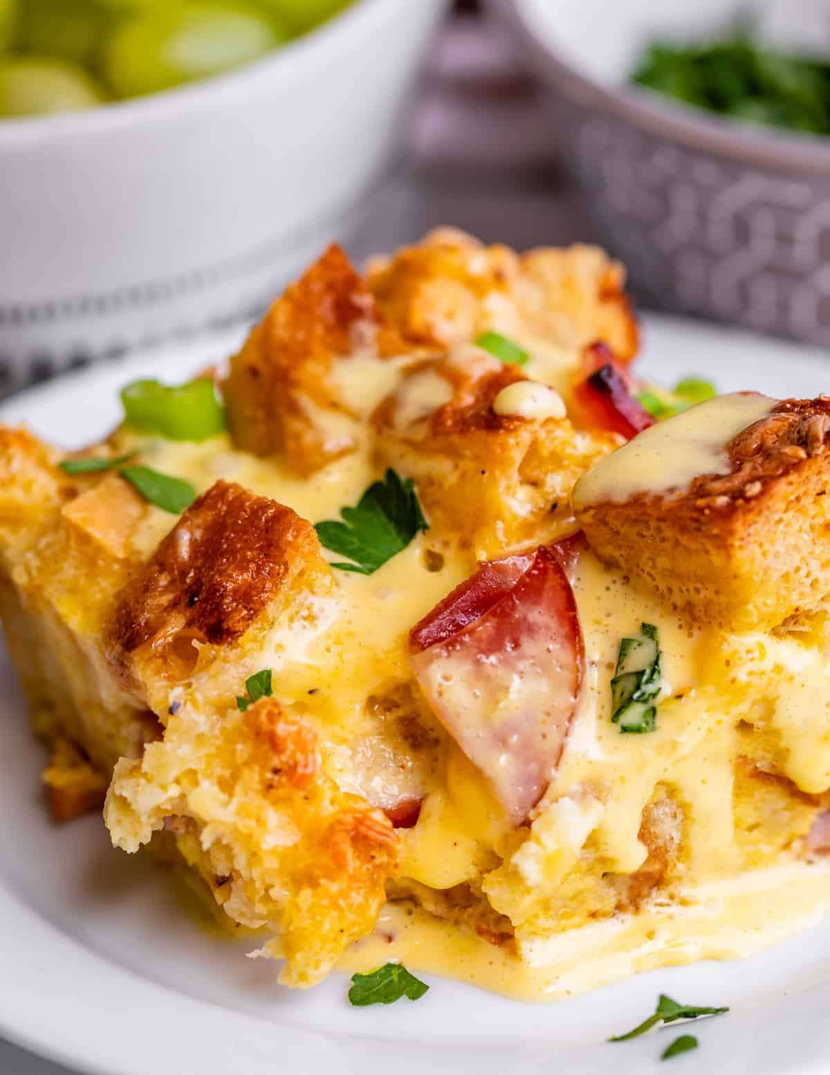 - Serve the hollandaise sauce over the casserole. I prefer to drizzle the sauce over individual portions, but you can spoon it over the entire casserole if you prefer.
