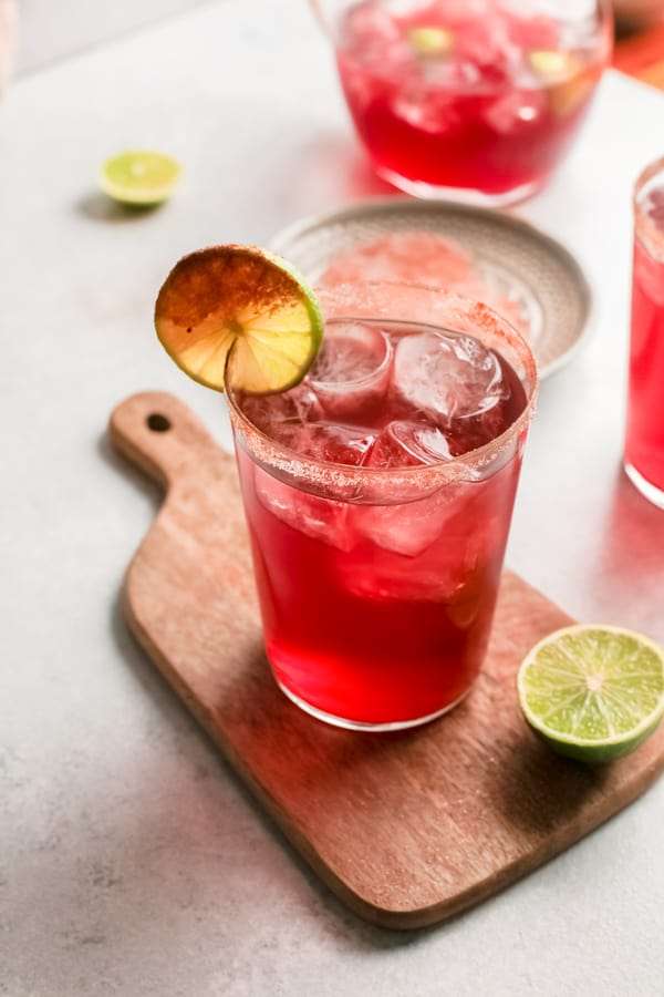 - In a pitcher add tequila, creme de cassis, and lime juice. Let chill in the refrigerator.