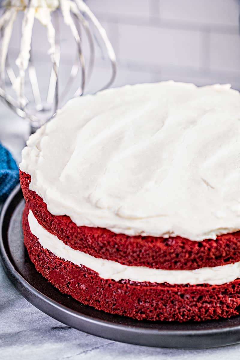- Once all milk mixture has been added in, beat in vanilla ,and salt and continue beating until the frosting is thick and creamy and everything is well mixed in, about 1 to 2 minutes more.