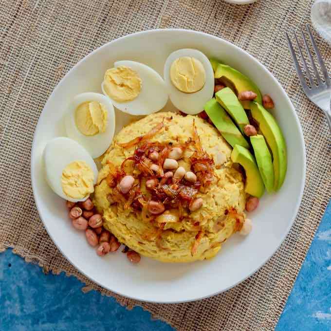 - Serve by garnishing with peanuts, the rest of the onions, the hard-boiled eggs and the avocado.