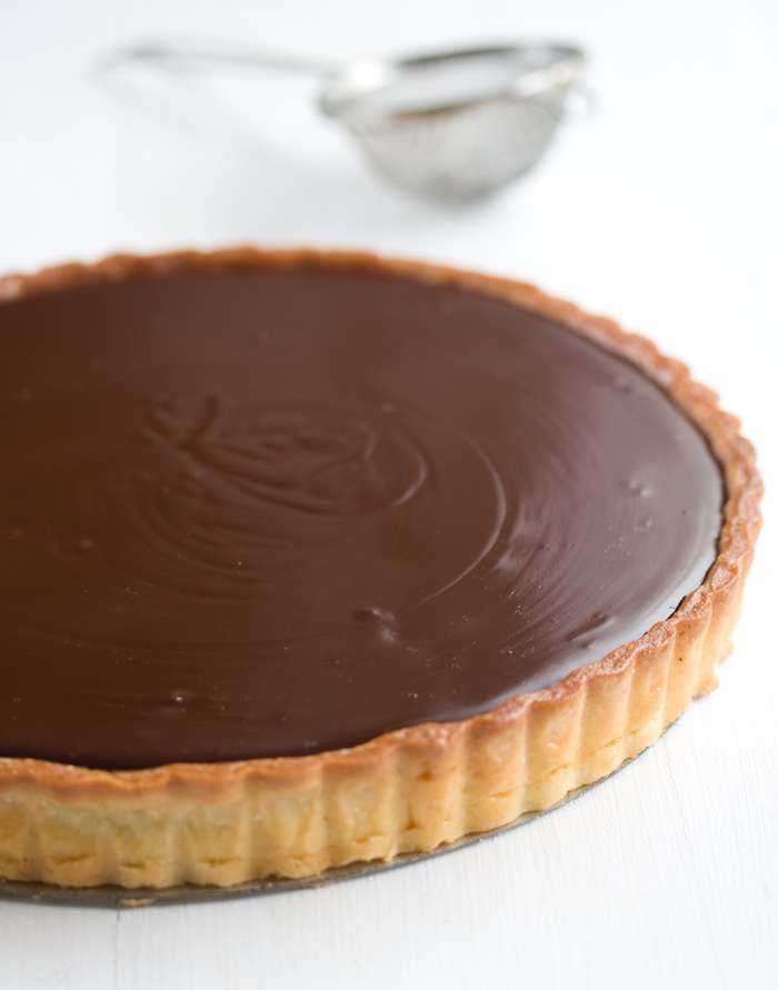 - Immediately pour the ganache into the prepared pastry case and allow to cool and serve at room temperature.