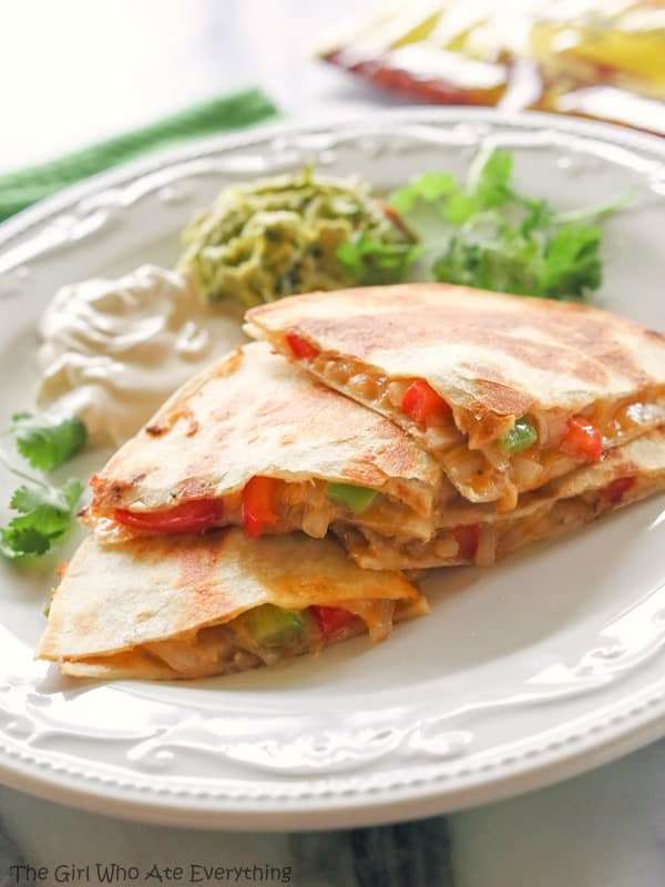 This Fajita Quesadilla is filled with seasoned veggies and lots of cheese. Serve them with all of your favorite fajita toppings. A quick dinner for any night of the week.