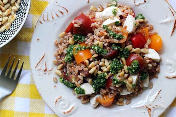 - Toss the dressing with the farro salad. Serve topped with toasted pine nuts.