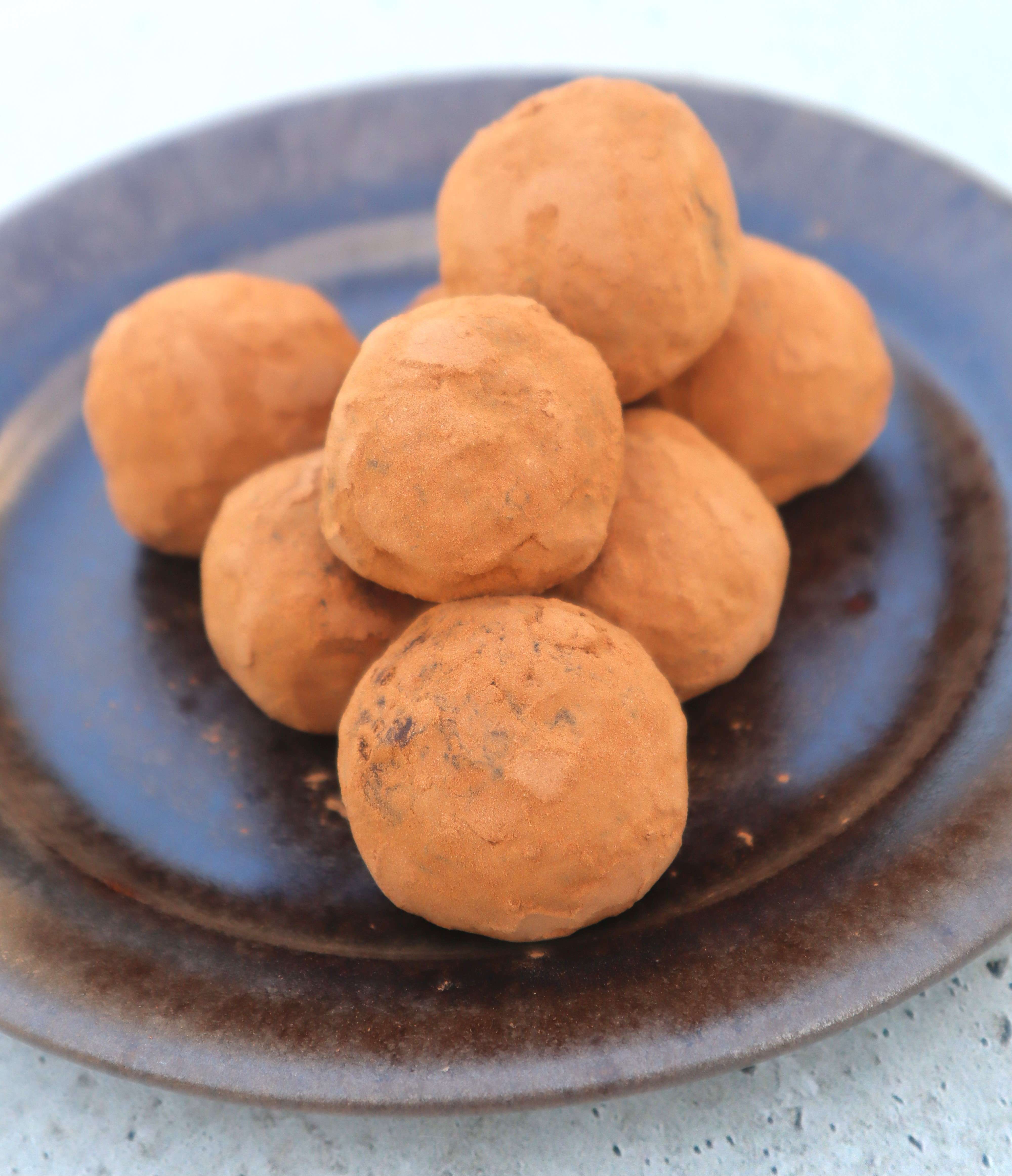 Fatfree no-chocolate truffles with dates, crunchy oats and carob