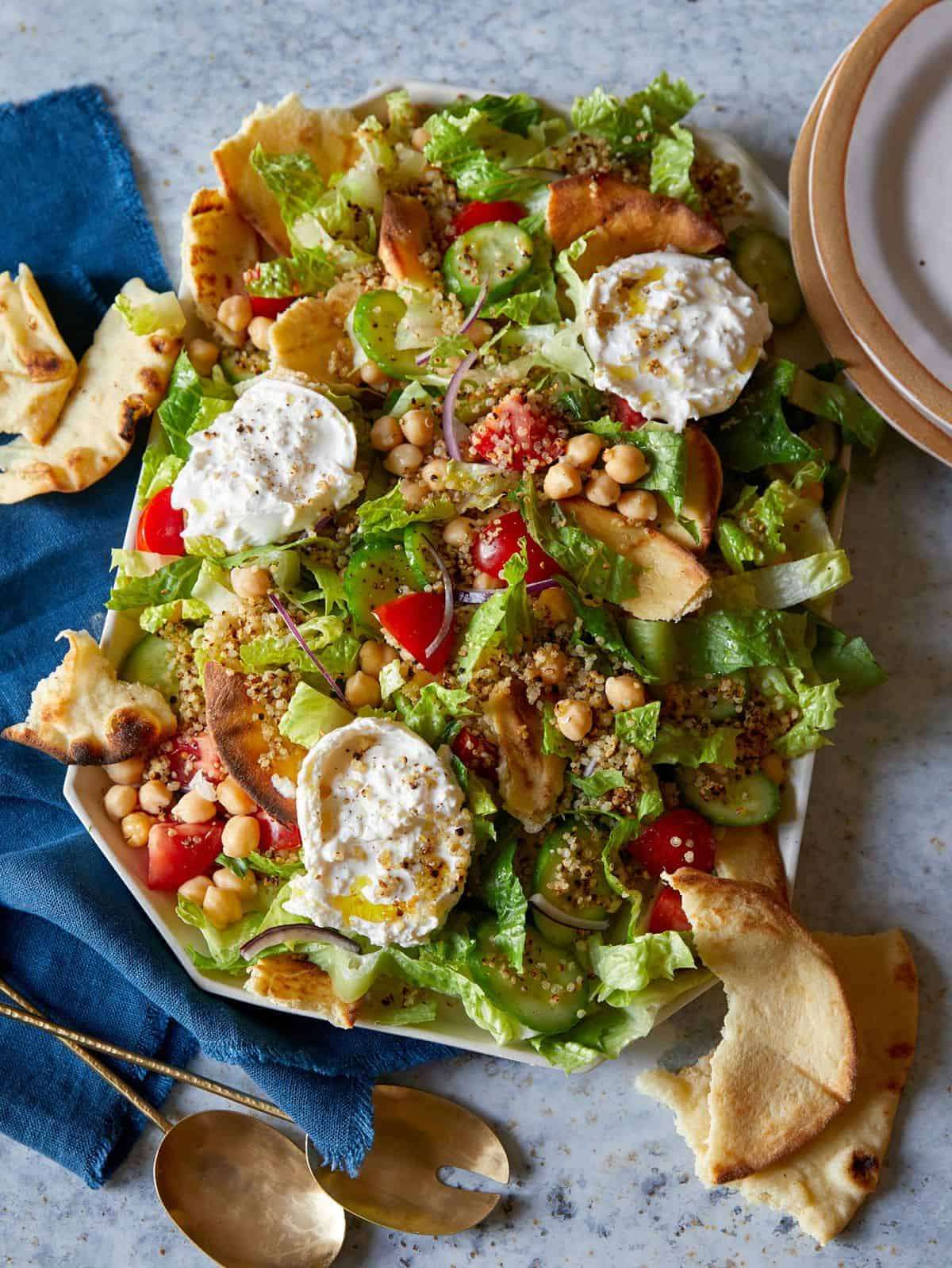 - 2 large toasted or grilled pita bread, broken into large pieces
