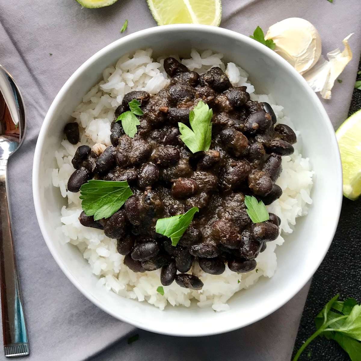 - While the black beans are cooking, when you are getting ready to eat, make the rice according to package instructions. Scoop beans over rice and enjoy as a main dish or a side to steak or sausage. Enjoy!